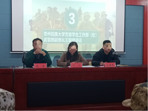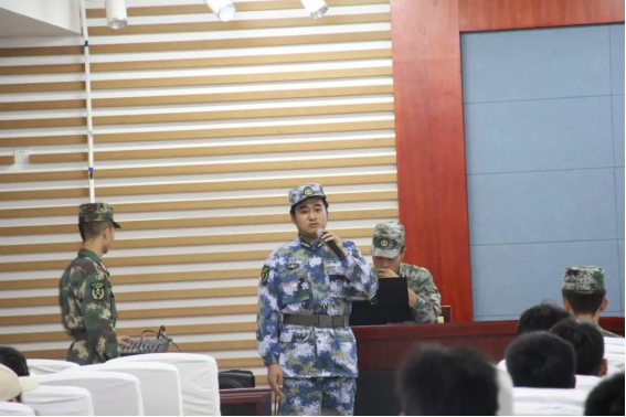 会议伊始,由周泉老师介绍出席人员,随后,全体参会人员起立奏唱《中华人民共和国国歌》,接下来,由公司党委员工工作部、武装部副部长王朝举讲话。王朝举副部长首先向同学们报告应征入伍的利好消息以及讲述了国防的重要性,并指出“只有每个中华人民都积极投身国防,我们的长城才能屹立不倒”的观念。利好消息主要有两个方面:第一,从经济方面来说,入伍的同学可以享受到学费补偿和国家助学贷款代偿,还可以享有地方政府的补助和奖励,服役期间还有优待金(各个地方不同),退役后有退役金;第二,从成长账方面来说,主要体现在毕业优待(可免毕业设计、挂科帮扶)、学业优惠、就业优待、政治优待(军人家属医疗免费等)。王副部长告知公司准备组建2022年入伍“预征班”并鼓励大家积极报名。