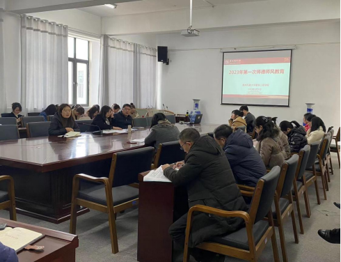 会上,何璘书记带领全体教师再次学习了《新时代高校教师职业行为十项准则》,并对教育部公开曝光第十一批 7 起违反教师职业行为十项准则典型案例为反面教材开展警示教育,呼吁全院教师要牢固树立底线意识,切实增强遵守教师职业行为十项准则的思想自觉和行动自觉,坚守为党育人、为国育才的初心,不断涵养高尚师德,以德施教,以德育德,做党和人民满意的“四有”好老师。并进一步强调作为高校教师必须对师德违规问题“零容忍”的坚决态度,时时处处严格约束自己,绝不逾越制度红线,绝不触碰纪律警戒线,绝不触及法律高压线。