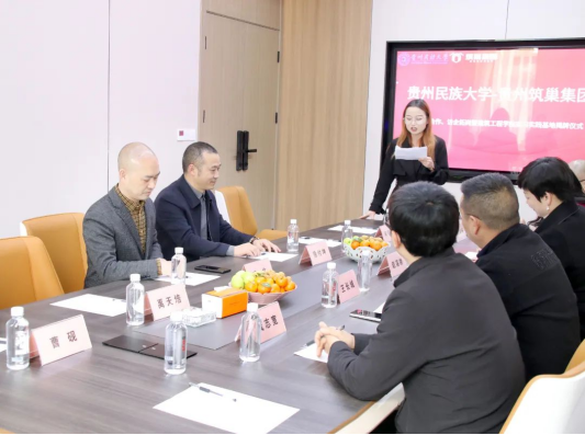 贵州筑巢集团董事长兼总裁徐付坤对高校代表一行的到来表示了热烈的欢迎并针对筑巢集团发展理念,集团地产交易、装饰装修、建筑工程三大业务板块等方面进行介绍。他表示:“贵州筑巢集团立足建筑业打造一站式服务平台,集团大楼目前已建立培训公司,下一步将建立人力资源中心为高校学子就业提供帮助。集团将借力现有资源与伟德国际victor1946通力合作,探索出校企合作新模式,实现校企价值链相通、教育链相融,把产教融合真正落到实处,在打造平台的同时递增产业内循环。”