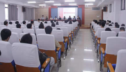 会议开始,全体起立奏唱国歌,歌声嘹亮庄重,会场氛围激扬。在国歌奏唱结束之后,机械电子工程公司李伟民经理向同学们致以真诚的祝贺,祝贺大家在校级选拔赛中斩获佳绩,也希望参赛选手在以后的学习和工作中也能有所收获。致辞后,李经理充分肯定了在当前大数据与信息技术飞速发展的背景下,本次比赛对于创新人才培养的积极意义。与此同时,李经理通过分享部分同学通过考研自习室考研成功背后的故事,谆谆教导大家好好珍惜大学时光,最大化利用时间。最后李经理向大家指出参加成图大赛不仅培养了老员工的绘图技能、创新精神,大幅度提升动手实践能力和应场能力,也展现出工业信息化、智能化背景下同学们的计算机制图、三维建模水准的显著提升,并激励大家在后续的省赛中发挥出优异的水平,争取在省赛中斩获最高奖项,为公司、公司和个人争创佳绩。