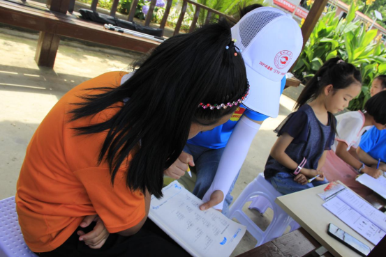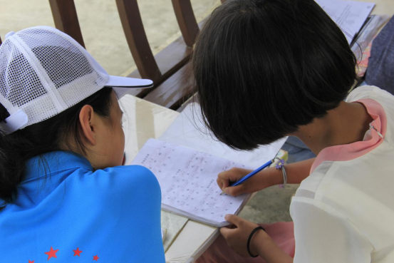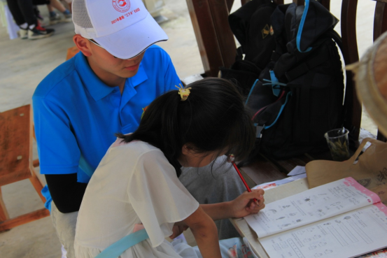 搭好模型后,志愿者们开始辅导孩子们完成暑假作业,因为他们很多孩子都是跟祖父母一起生活,父母大多在外打工,在学习上几乎没有人辅导。在志愿者耐心的辅导下,孩子们的作业完成的很顺利,这让一同前来的爷爷奶奶很高兴,志愿者们帮他们解决了一个困扰他们的难题。